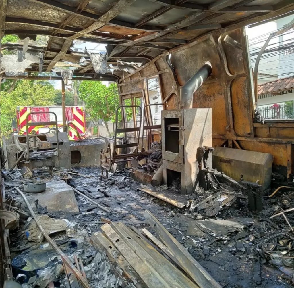 A las cinco de la madrugada, los gritos de los vecinos los despertaron. Salieron rápidamente del apartamento y se encontraron el autobús en llamas.