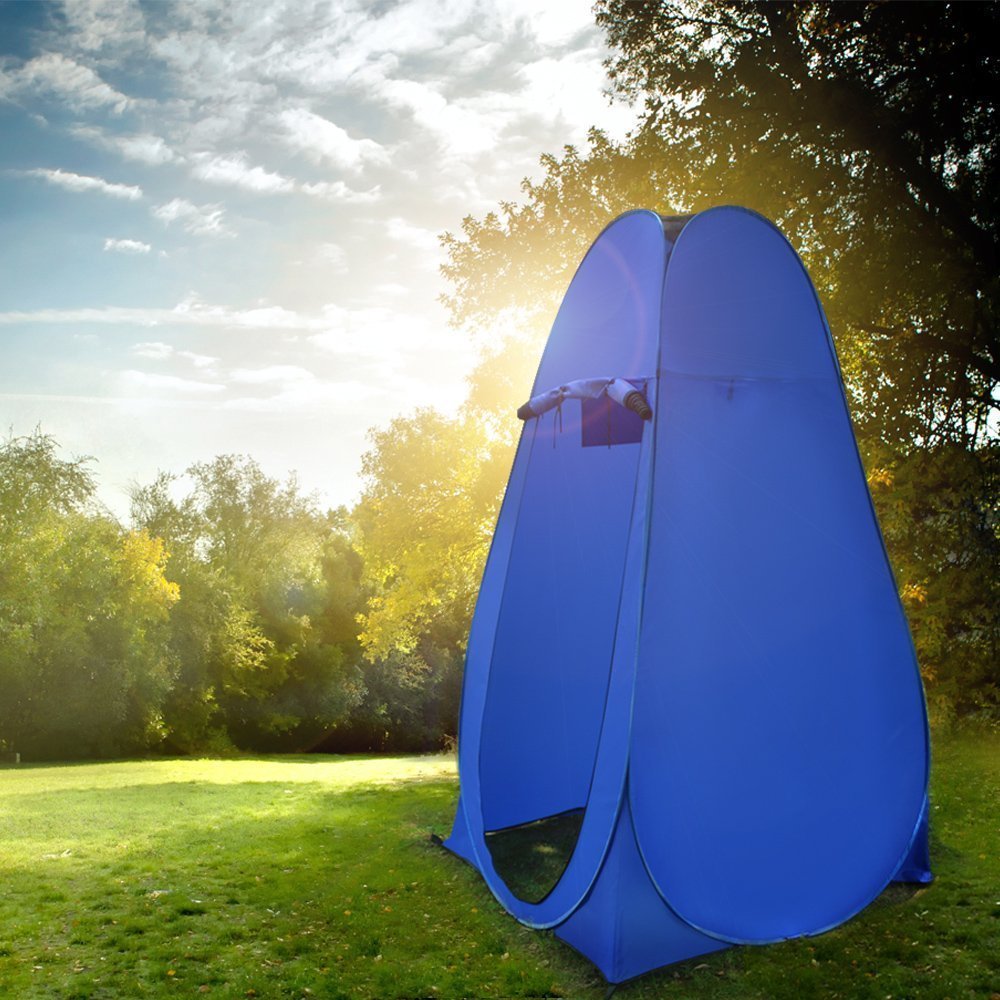 Cualquiera de estas duchas de exterior se pueden complementar con una especie de carpa que te dará más privacidad. Además también se puede utilizar para meter un baño portátil.