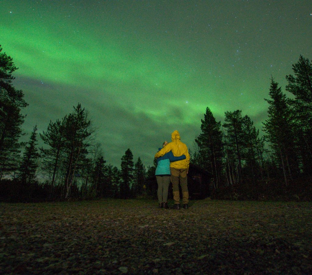 Esta fue la primera foto que hice. Comprobé que esa ligera luz verde, que mis ojos pensaban que era debido al brillo de la luna, no lo era. En seguida el cielo se fue haciendo más verde y esta pareja de alemanes vieron por primera vez Auroras Boreales con sus propios ojos.