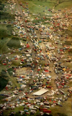 Empezó con un convoy de caravanas, furgonetas, autobuses y camiones guiados por jóvenes moviéndose por Inglaterra buscando un sitio para celebrar el festival. Los medios se interesaron mucho por esto, lo llamaban el convoy hippy.